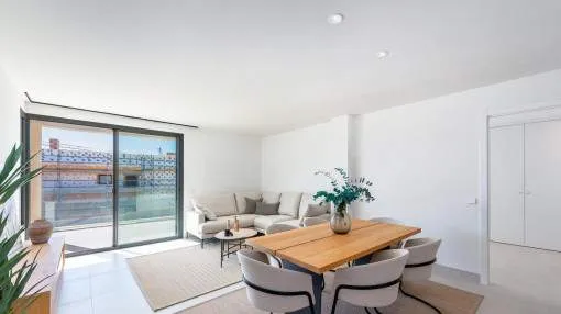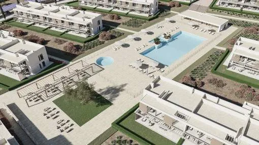 Details: A modern private residential complex with a total of 69 contemporary apartments is being developed a short distance from the natural beach of Es Trenc. Residents will benefit from generous communal areas, including a saltwater swimming pool, beautifully landscaped Mediterranean gardens and a fully equipped fitness area. The energy concept is based on a sustainable heat pump system, supplying the air-conditioning units and ensuring a comfortable indoor climate throughout the year – cool in summer and warm during the cooler months. The apartments stand out for their modern architecture and high-quality finishes. Great importance is placed on the use of premium materials. Standard features include air-conditioning with hot and cold function as well as underfloor heating in the bathrooms. Ground-floor apartments offer additional covered terraces, while the upper-floor units feature balconies and private rooftop terraces. A variety of floor plans are available, allowing flexibility and catering to different lifestyle needs. Each apartment includes a private parking space equipped with charging points for electric vehicles. The required energy is generated by photovoltaic panels installed on the carport roofs. The following apartment types are planned: Ground-floor apartment with approx. 94 sqm living area and 2 bedrooms – from €748,000 Ground-floor apartment with approx. 115 sqm living area and 3 bedrooms – from €829,000 Upper-floor apartment with approx. 94 sqm living area and 2 bedrooms – from €748,000 Upper-floor apartment with approx. 115 sqm living area and 3 bedrooms – from €869,000 Further units of this project: referenceconstructed areabedroomsfloorprice11888894 m²20€ 748,000.- 118888A115 m²30€ 869,000.- 118888B94 m²20€ 748,000.- 118888C115 m²30€ 869,000.- Location & surrounding area: Directly at the marina of Sa Rápita, on the south coast, you find the dreamlike large sandy beach of Es Trenc, one of the most beautiful beaches of the island. The calm village is mainly popular among sailors and families. Especially small holiday houses are lined up along the steep coast. The village has a small supermarket, a bank, a bakery and a kiosk for the everyday needs. The village of Campos with large supermarkets and a weekly market is a short drive away. The best ice cream in Mallorca and several restaurants with sea views are found along the coastal road inviting cyclists, residents and tourists to stop for a bite to eat. Sa Rápita is only an approx. 25-minute drive away from the airport.