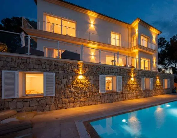Frontline villa with 4 bedrooms and 4 bathrooms is located on the peninsula of Torrenova with private sea access. From the property there are panoramic views of the entire bay of Palma with Puerto Portals, Costa d'en Blanes and Punta Negra.