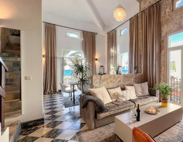 This exceptional property in the first sea line on the sought-after Playa de Palma combines stylish living with outstanding investment potential. The main house, originally built in the 1950s, has been extensively refurbished and renovated in recent years and now shines in modern splendour. With a generous constructed area of 158 m² spread over two floors, the house offers three bedrooms, one of which is loft-style on the upper floor, a bathroom, two terraces and a commercial space on the ground floor. The front terrace offers breathtaking views of the sea, while the rear terrace faces the quieter side street. This side street leads to the additional five separate residential units, which offer space for two flats and three studios on a total area of 113 m². Each unit is equipped with a modern kitchen and a bathroom. In addition, all residential units and the main house have air conditioning and high-quality PVC windows with double glazing, which ensure a high level of living comfort and energy efficiency. This property is perfect both for owner-occupation and as a lucrative investment opportunity. Its seafront location makes it a rare opportunity to live in one of the most sought-after areas of Palma while benefiting from the income generated by the additional residential units. The flats are offered without furniture - except for the kitchens and bathrooms - and serve only as a furnishing idea. All amenities are within walking distance. There are very good bus/transport connections and the airport is only a few minutes' drive away.