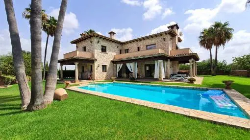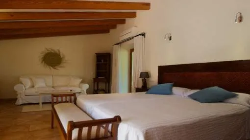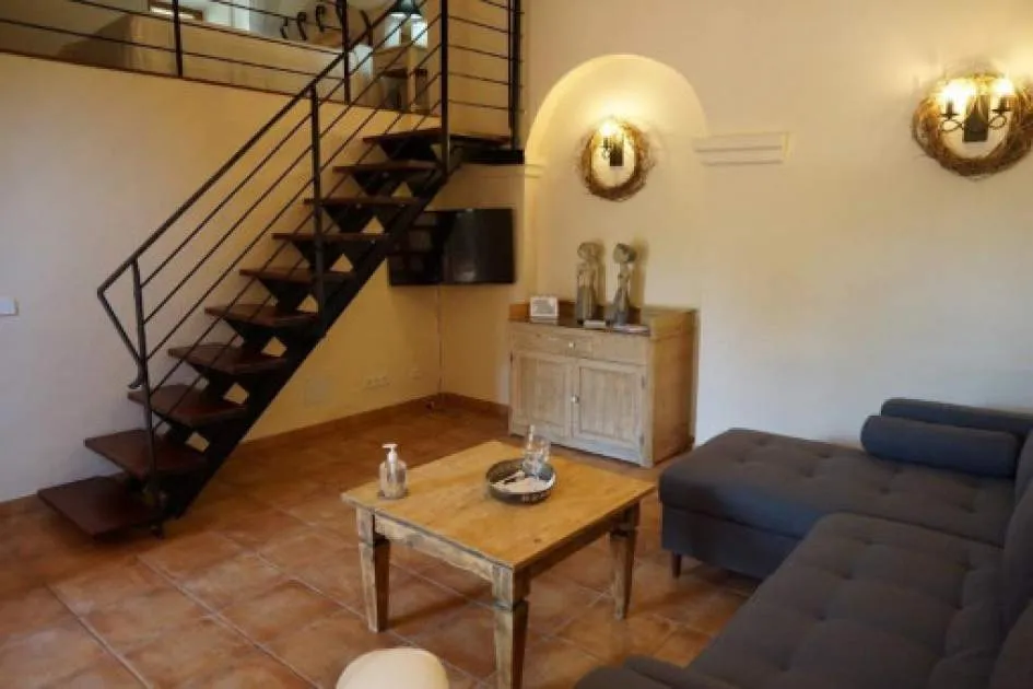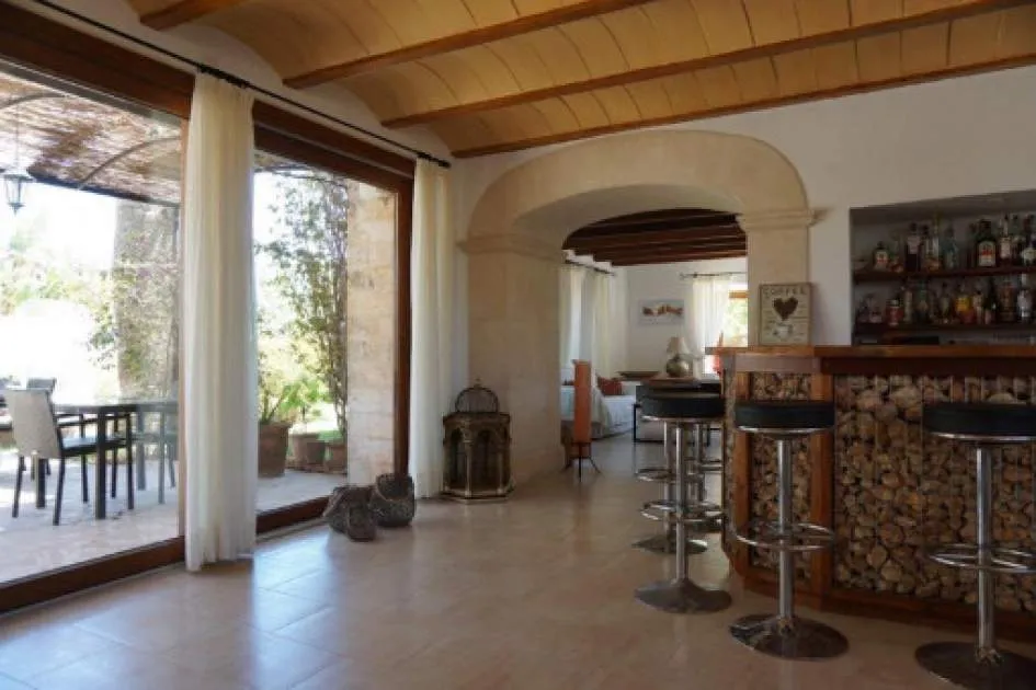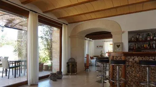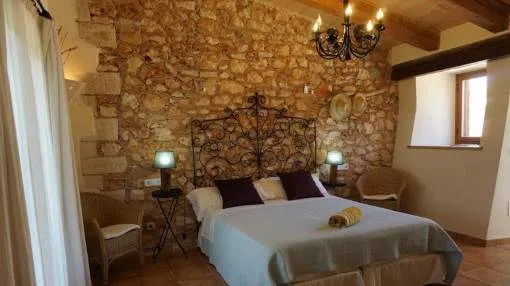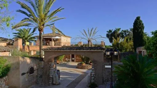 Details: This charming agroturismo is located on a plot of approx. 58,000 sqm in the picturesque Cala Marsal, close to the charming Portocolom. A real little oasis that offers plenty of peace and privacy. The magnificent Vall d'Or golf course, the delightful harbor of Portocolom and various bathing bays can be reached in just a few minutes. The rural hotel has an agrotourism license and a closed restaurant license. You will be enchanted by the property from the outside. The magnificent bougainvillea lends a special flair to the elegant natural stone façade with its purple flowers. The Agroturismo offers 9 cozy junior suites designed in traditional Mallorcan style. Each suite has its own terrace, a bedroom, a bathroom and a small living area. Two of the rooms on the upper floor also offer breathtaking views over the countryside to the nearby sea. Various communal areas allow guests to get together. The property also has a further unit with 2 double bedrooms and a private pool. Perfect for employees or as a private retreat. The various terraces and the tastefully landscaped garden offer a paradise for nature lovers and guarantee peace and seclusion. The focal point is the inviting pool with comfortable wooden loungers for relaxing and unwinding. The perfect place to relax. Palm trees and citrus trees create an authentic Spanish ambience. Particularly noteworthy are the vines, which give you the opportunity to produce your own wine. Further features include air conditioning, central heating and, in some cases, underfloor heating. A garage, outdoor parking spaces and an 80m-long photovoltaic system complete the package. Please contact us for further information. Returns from holiday lettings: For initial orientation you can use the “Porta Holiday Returns Calculator” without obligation to calculate your potential returns from holiday letting. NB: Due to the current legal situation it is possible that in certain municipalities renting restrictions may apply, or new touristic licences may not be granted. Your Porta Mallorquina real estate consultant will be pleased to advise you whether the property you have chosen is affected. Go to Returns Calculator. Location & surrounding area: Porto Colom, in the southeast of the island attracts many boating enthusiasts from near and far due to the largest natural harbour of Mallorca. Fishing boats, motorboats, yachts and Majorcan traditional “llauts” are anchored side by side. Beautiful restaurants where you can eat fresh fish border the harbourside promenade. The atmosphere of this small old town irradiates calm and a Mediterranean flair. A charming village for spending magnificent holidays by the sea.