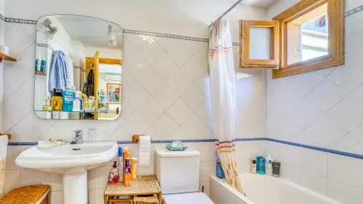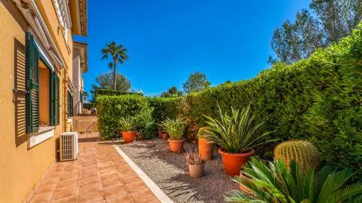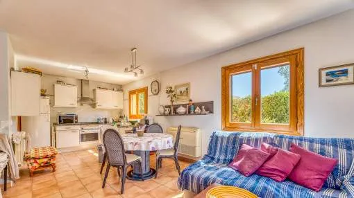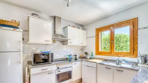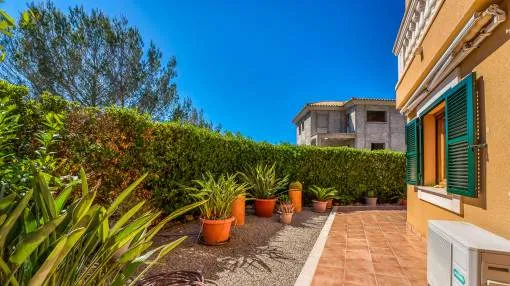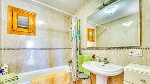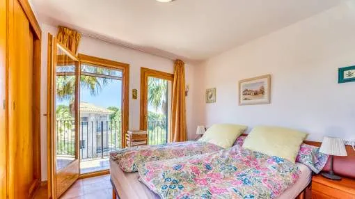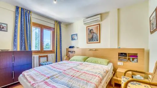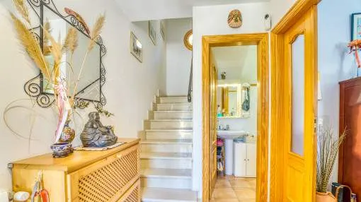 Details: This well-maintained semi-detached house spans three floors and was built in 2001. It is located in a Mediterranean residential complex with a pool. On the ground floor, there is a space of 52 square meters comprising an entrance area and a living, kitchen, and dining area with access to the terrace, which provides direct access to the pool. Additionally, there is a guest toilet and a laundry room on this floor. The exclusive and undivided garden area of 112 square meters is easy to maintain and ideal for outdoor activities. The first floor consists of two double bedrooms, each with its own bathroom, covering an area of 52 square meters. Both bedrooms have built-in wardrobes and air conditioning. The second floor encompasses 31 square meters and houses the master bedroom with a fully equipped en-suite bathroom. It also features two sun balconies for a sunny start to the day. The property features terracotta tile floors, built-in wardrobes, wooden shutters, a gas central heating system (natural gas), and air conditioning for both warm and cold air. The house is sold furnished. Additionally, the property includes a separate storage room and an underground parking space. Returns from holiday lettings: For initial orientation you can use the “Porta Holiday Returns Calculator” without obligation to calculate your potential returns from holiday letting. NB: Due to the current legal situation it is possible that in certain municipalities renting restrictions may apply, or new touristic licences may not be granted. Your Porta Mallorquina real estate consultant will be pleased to advise you whether the property you have chosen is affected. Go to Returns Calculator. Location & surrounding area: Can Picafort with the southern branch of the truly enchanting Playa de Muro offers a flawless sandy beach and a haven for lovers of nightlife. Far from the tourist bustle there is still a good road access and isolated districts, where you can get hold of good real estate deals close to the beach.